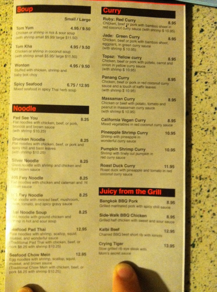 Chicken, pork or shrimp in red coconut curry sauce and a touch of kaffir leaves.